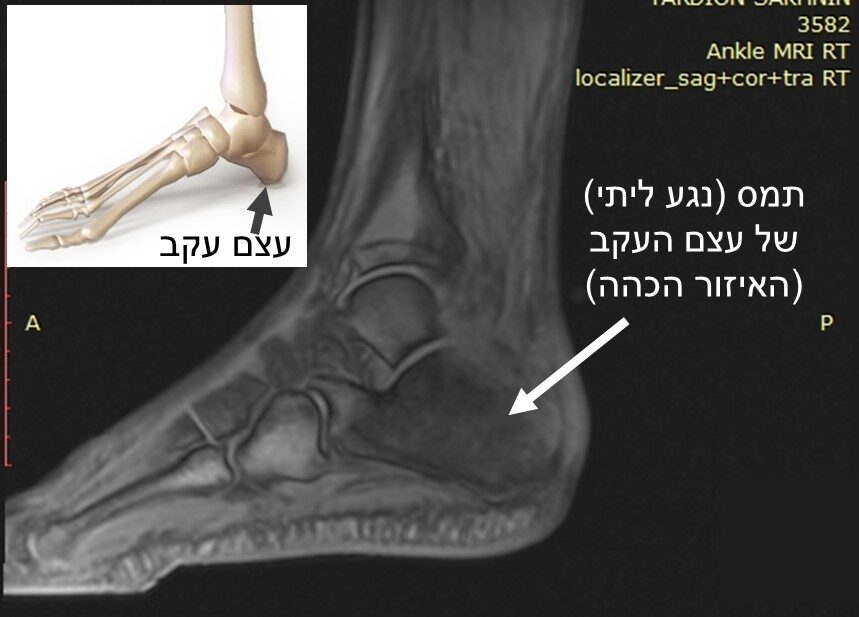 יוסי, בן 53, יד ימין דומיננטית, החל לחוש כאבים בעקב רגלו הימנית, בעיקר בעת קימה בבוקר. הדבר נמשך כחצי שנה עם החמרה מתמדת בכאב. יוסי המשיך לתפקד כרגיל למרות הכאבים, עד השלב בו לא יכול היה לדרוך עוד על הרגל.