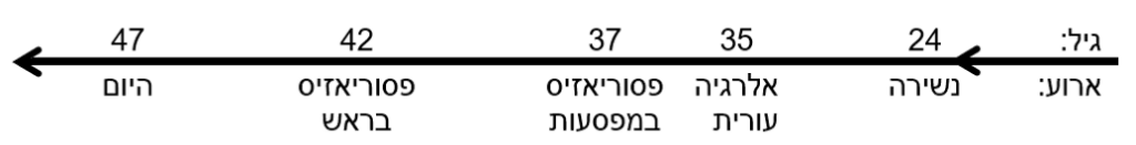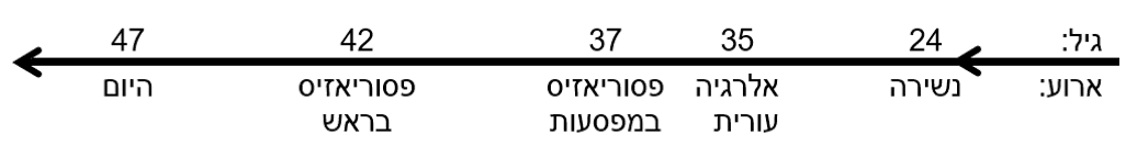 2. כ- 14 שנים לפני האלרגיה, התחילה אצלה נשירת שיער מאוד אינטנסיבית הנמשכת עד היום.