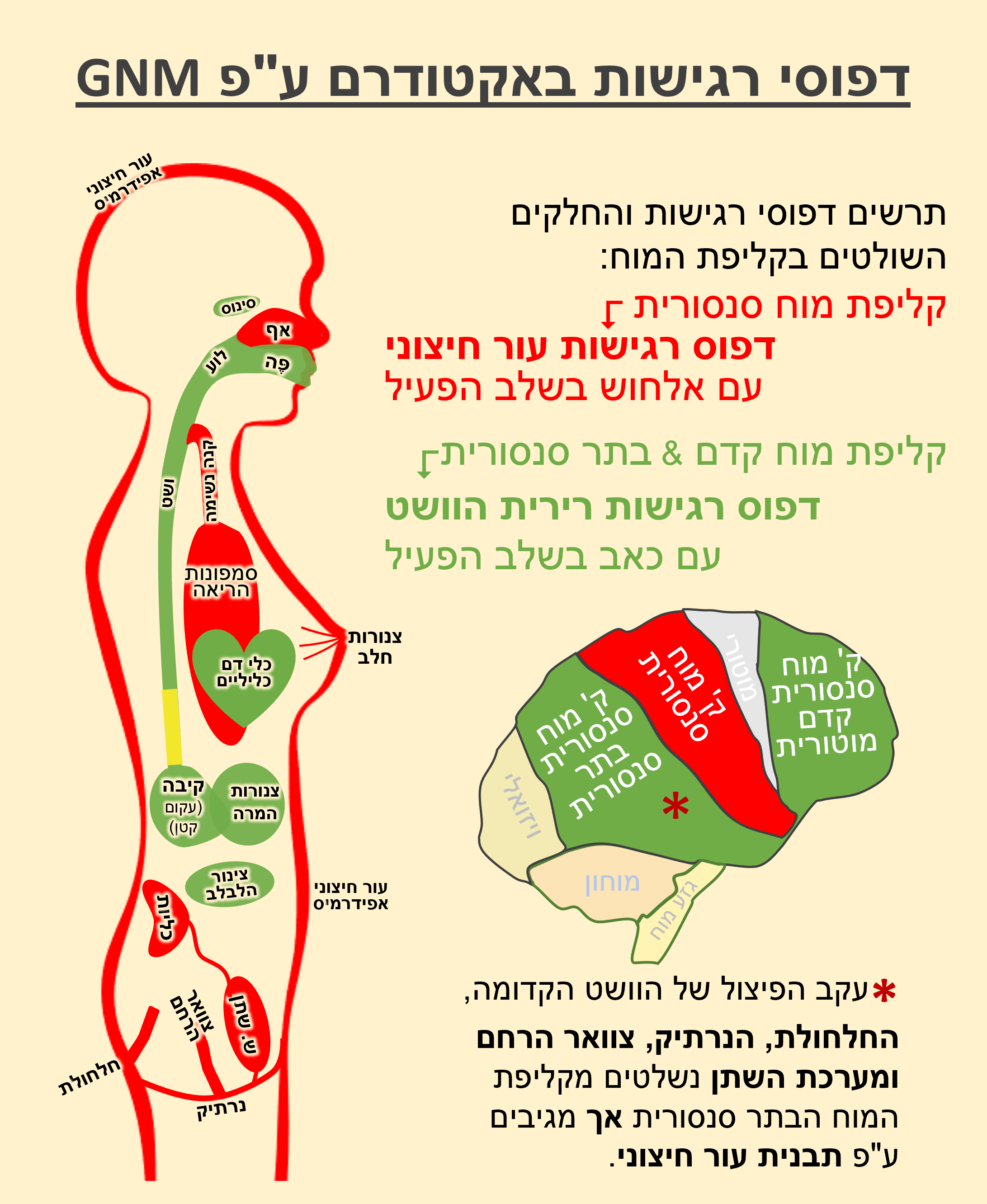 הערה: שלא כמו באקטודרם, ברקמות השייכות לשכבות הנבט אנדודרם, מזודרם ישן ומזודרם חדש, אין משמעות לדפוסי רגישות (וברקמות אלו ממילא אין כלל רגישות לתחושה).